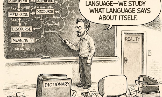 Review The Grammar That Consumes Itself: Linguistics at the Edge of Meaning The chapter ‘The Language of Linguistics’ from Part 6 ‘New Paradigm of Communication’ of THE MISCOMMUNICATION TRILOGY, ‘The Conspiracy of Speech, Vol. I.’ presents a dense and philosophically ambitious critique of linguistics as both a scientific discipline and a historical force that reshapes communication itself. It situates linguistics not merely as a neutral field of inquiry, but as a transformative meta-language that simultaneously clarifies and distorts the very phenomenon it seeks to explain. The chapter operates at the intersection of philosophy, communication theory, and linguistic history, advancing a central thesis: that the scientific study of language, while promising clarity and structure, ultimately contributes to the instability and obsolescence of meaning in contemporary communication systems. At the core of the chapter lies a fundamental paradox. Linguistics emerges as a discipline driven by the desire to stabilise language, to render it analyzable, predictable, and governed by rules. Yet this very act of systematisation produces an unintended consequence: the abstraction of language away from lived experience. Language, once embedded in social interaction, ritual, and context, is reconfigured into a system of categories—phonemes, morphemes, syntax—each designed to capture its internal logic. This transformation is not merely descriptive but constitutive. The act of analysing language changes its nature, creating a gap between theoretical models and practical communication that becomes increasingly difficult to bridge. The review must emphasise how the chapter frames this gap not as a temporary limitation but as an intrinsic feature of linguistic inquiry. The more linguistics refines its models, the further it distances itself from the fluidity of real communication. This tension between system and practice becomes the central axis around which the chapter unfolds. It is not a failure of linguistics but its defining condition: the discipline succeeds precisely by abstracting language, yet in doing so, it produces a form of knowledge that cannot fully return to the lived reality from which it emerged.