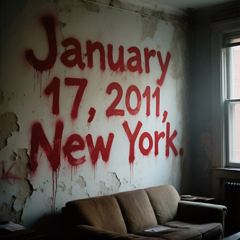 It was truly more than just a date on the calendar. I didn't knock at all. He had written a date on the living room wall in large, irregular letters, painted in red. He called them "teachings." It was as if he was afraid he might forget it. The red marker had dried out, as if he had emptied it to write those letters. January 17, 2011, New York.