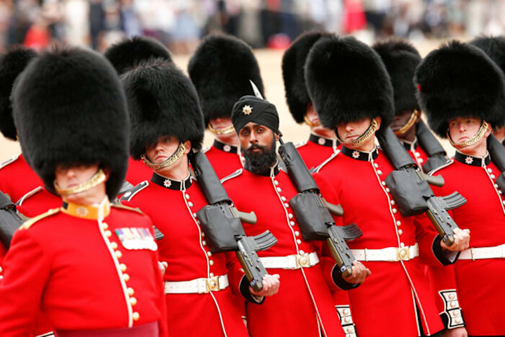 The huge fur hats of guardsmen now look like pure ceremony. But they have an older military logic. Such tall headgear, first associated with grenadiers and later with guards units, made the soldier look taller and more imposing. In the formations of the eighteenth and nineteenth centuries, that mattered: an army was supposed to make an impression even before the first shot. The history of grenadiers shows that elite troops often emphasized their status through uniform, and the tall headgear worked as a means of intimidation and as a way to distinguish the best soldiers.