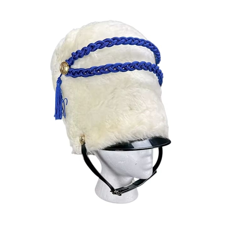 The busby is a tall cylindrical fur headdress especially associated with hussars. It looks exotic and even slightly absurd: too tall, too furry, too theatrical. But historians of uniform explain its origins quite simply. For light cavalry it was part of Hungarian tradition and at the same time a sign of regiment, status, and fighting style. Once again the tall fur headdress solved a familiar problem: it made the rider more visible, taller, and more expensive-looking.