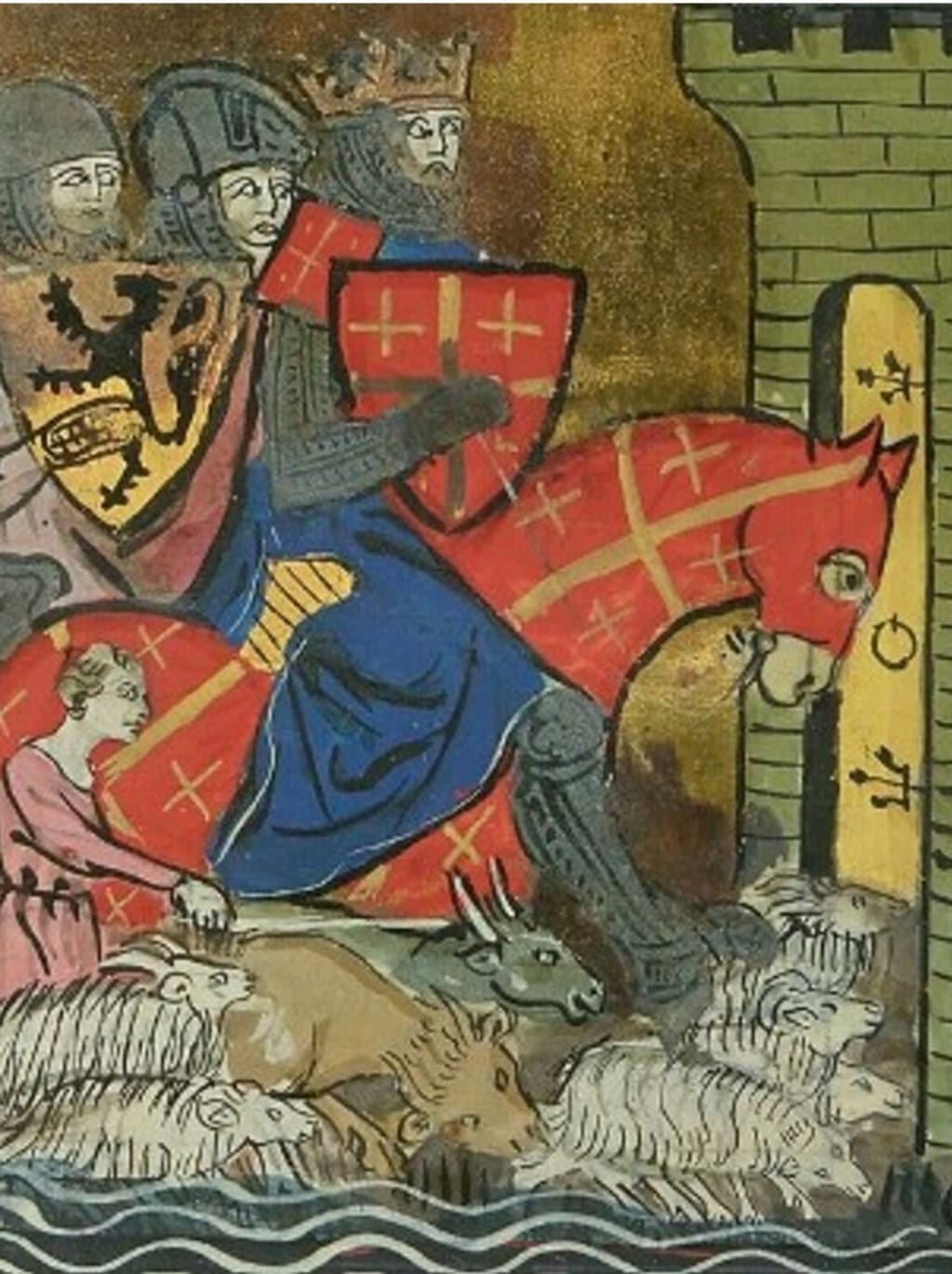 His father served William the Conqueror, survived the Battle of Hastings but died quite young leaving a very young Godfrey and his two brothers with their mother for their upbringing. Godfrey began his military training around about the age of ten and became a proficient horse rider, swordsman and bowman.