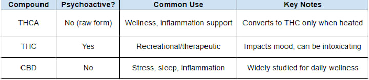 Many people confuse THCA with THC, or CBD with THC, but the differences matter, especially for older adults looking for wellness support: