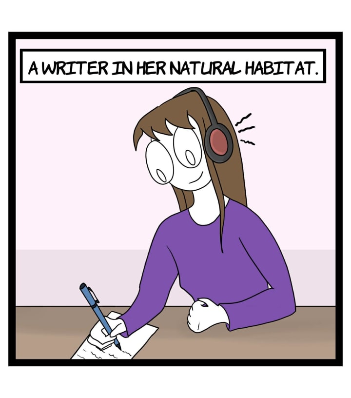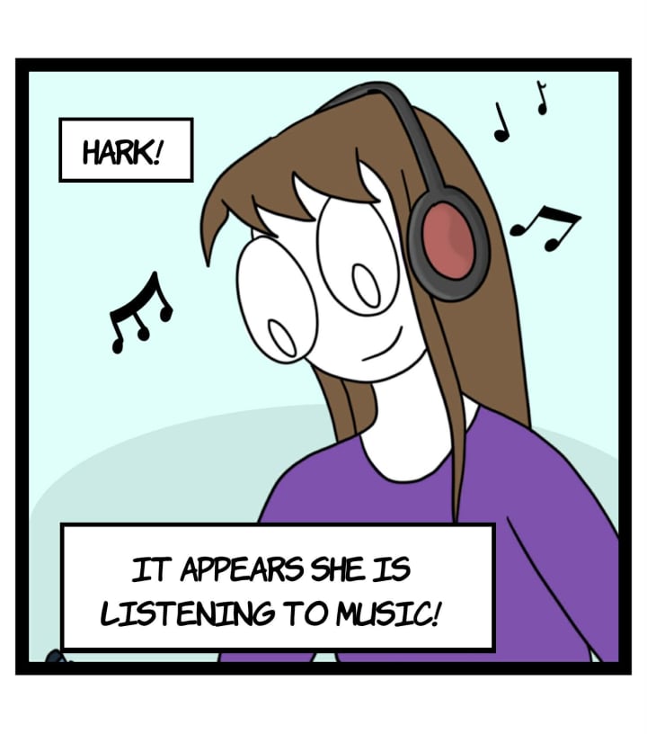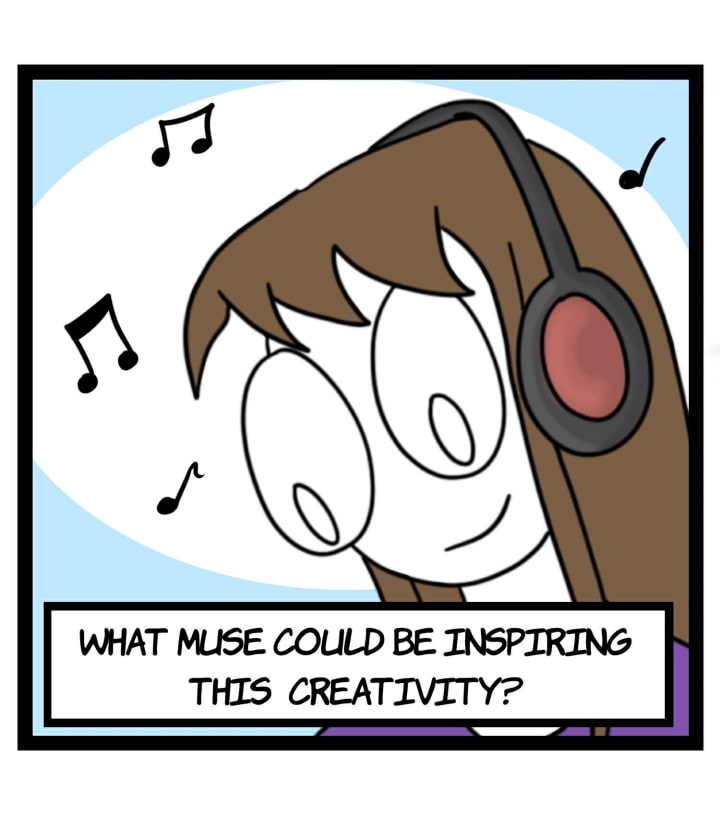 A comic and haiku about musical inspiration for writing